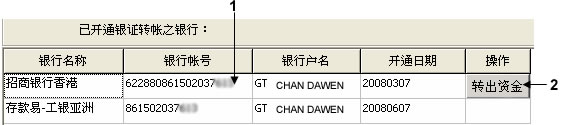 2:招商银行银证转帐可以按此按钮可申请资金转出至招商银行香港的银行账户